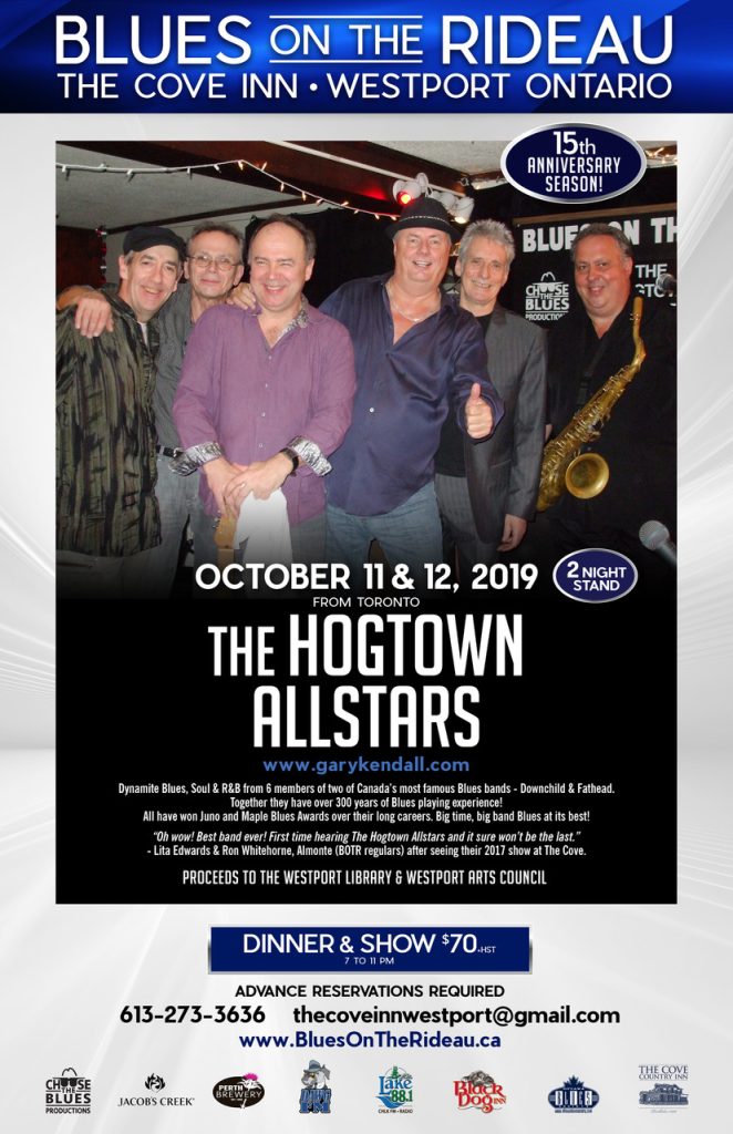 Fri.Oct.11 + Sat.Oct.12 Blues on the Rideau with THE HOGTOWN ALLSTARS (Live Electric Blues feat. Members of DOWNCHILD Blues Band from Toronto) 7-11pm $70 + HST Buffet, Show + Charity www.bluesontherideau.ca www.garykendall.com/Bluestime/THAS.htm