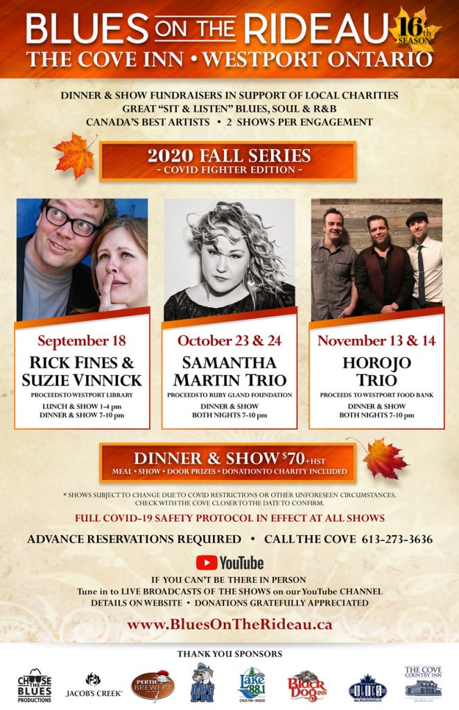 BLUES ON THE RIDEAU AT THE COVE INN, WESTPORT ONTARIO ANNOUNCES NEW “COVID FIGHTER” FALL 2020 SERIESth