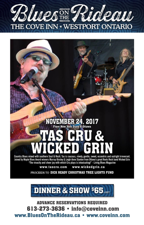 Fri.Nov.24 Blues on the Rideau Series with TAS CRU and WICKED GRIN (Blues, NY State/Ottawa) 7-11pm Buffet + Show $65 + HST www.bluesontherideau.ca www.tascru.com www.wickedgrin.ca