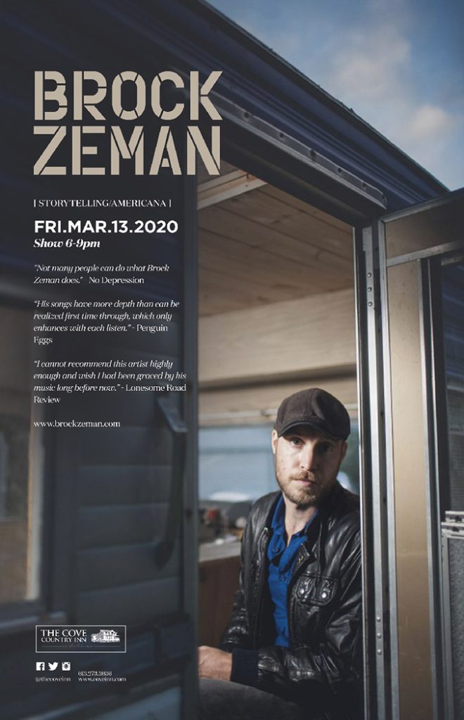 Brock plays the Cove on Friday March 13th from 6-9pm. Join us for a great night!