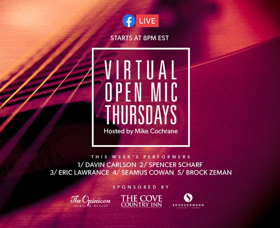 Mike Cochrane will continue his Facebook live “Virtual Open Mic Night” tonight at 8-9:30pm. Here’s what he said about the event: