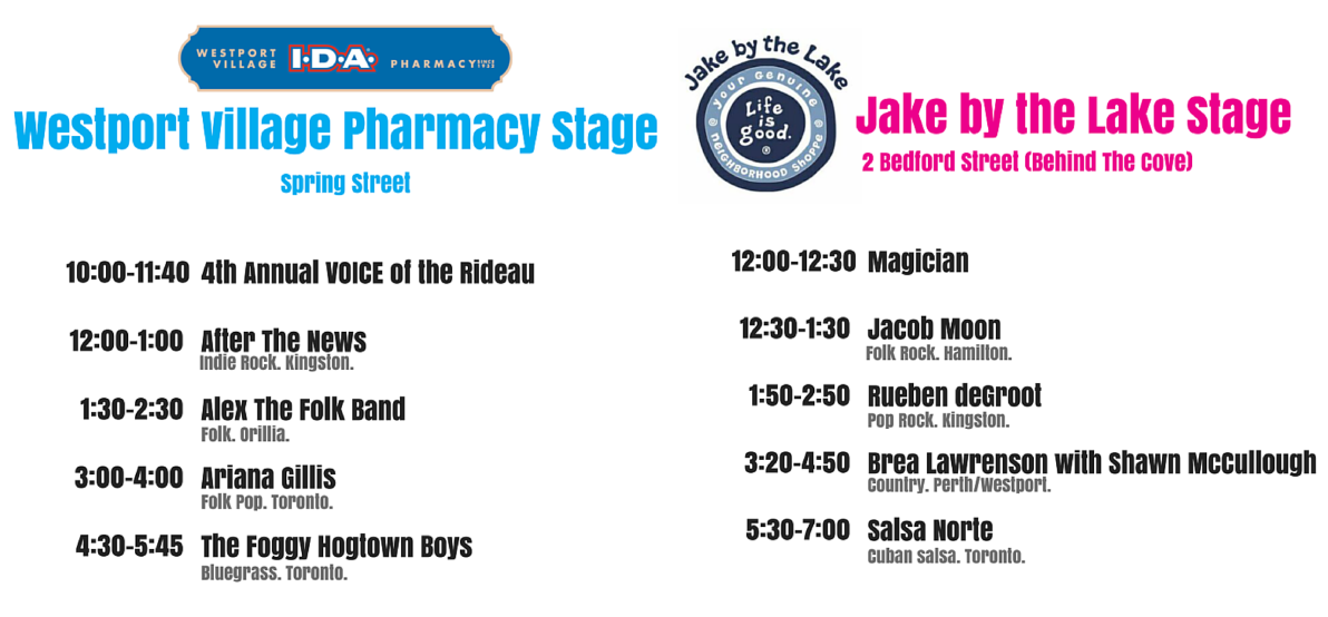 It’s the event you’ve all been waiting for! The *free* MUSICwestport Open Air Music Festival returns 15 August 2015. With 2 stages, 8 bands, the popular VOICE of the Rideau singing contest finale and the Spring Street Festival, WAC promises a full day and full range of music and entertainment for all ages.
