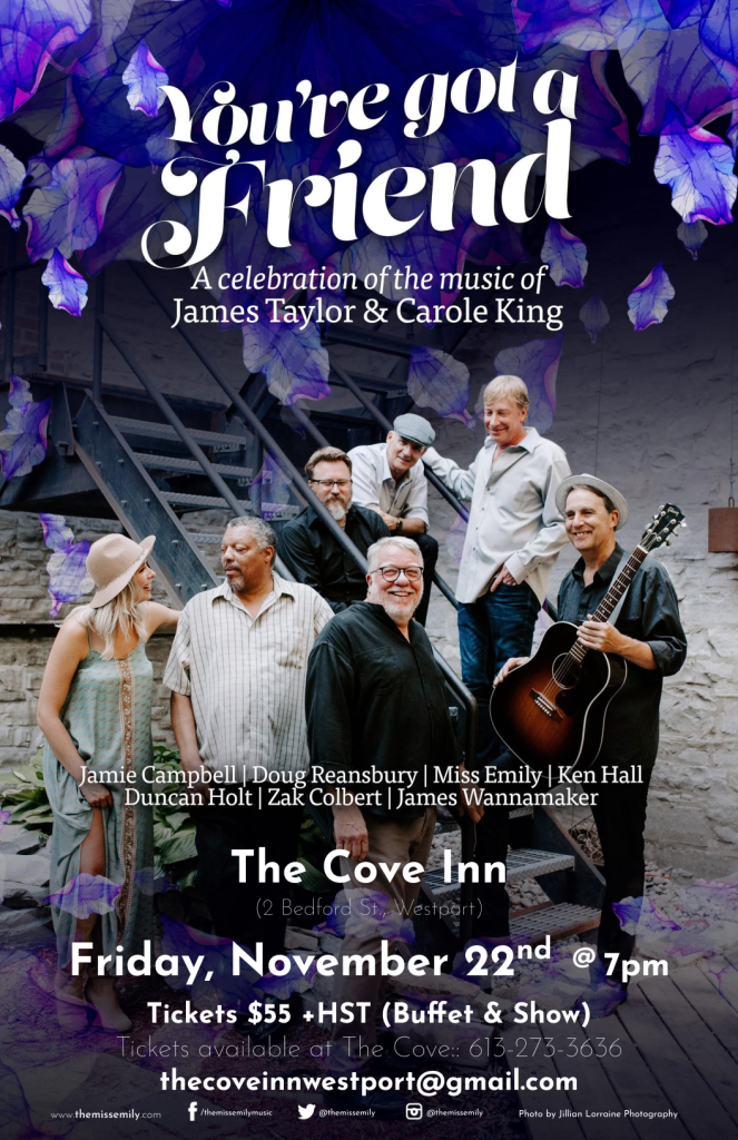 Such as successful band, we just have to have them back, again! It’s hard to find the time now that Miss Emily is so busy! “You’ve Got a Friend” is a classic James Taylor/Carole King show made up of a collection of Kingston area musicians, all with an incredible depth of musical talent and experience, as well as a great love of James Taylor’s and Carole King’s music.