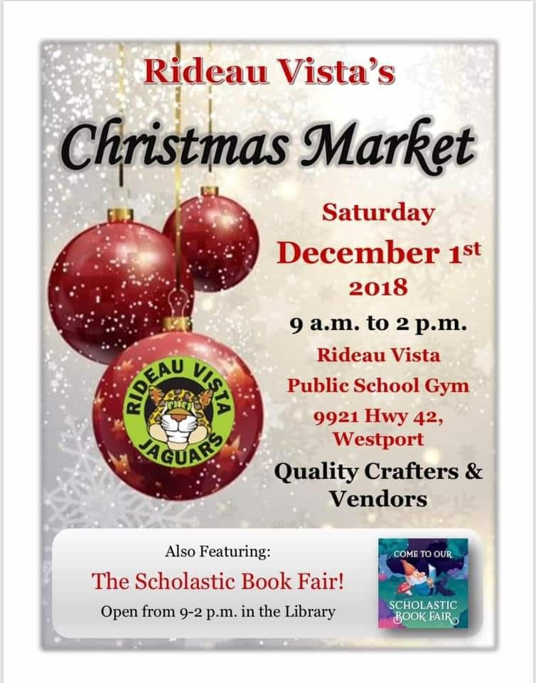 Saturday, December 1st, 2018 from 9 am to 2 pm. Rideau Vista Public School Gym, 9921 Hwy 42, Westport. Quality crafters and vendors. Also featuring “the scholastic book fair”! Open from 9-2 pm in the Library.