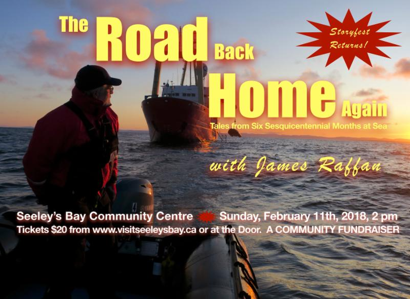 February 11th at 2pm join us for a special Story Fest.  Click on here to register for Story Fest 2018 The Road Back Home Again.    Tales from Six Sesquicentennial Months at Sea with James Raffan.