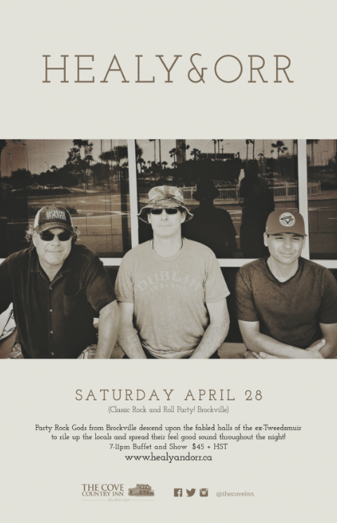 Sat.Apr.28 HEALY & ORR (Classic Rock Party Band! Brockville) 7-11pm $45 + HST www.healyandorr.com
