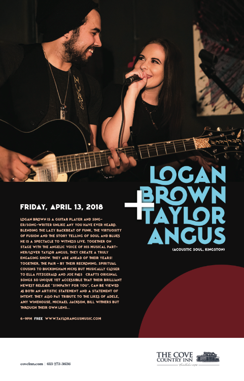 Fri.Apr.13 TAYLOR ANGUS & LOGAN BROWN (Acoustic Soul, Perth) 6-pm www.taylorangusmusic.com