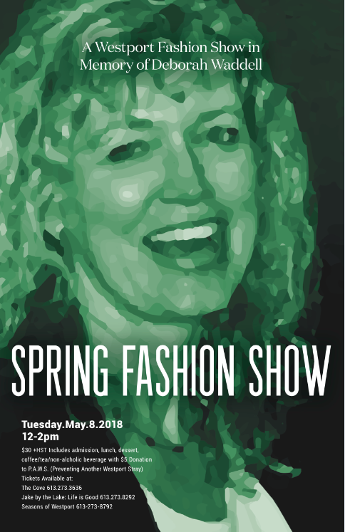 Tue.May.8 SPRING FASHION SHOW: A Westport Fashion Show in Memory of Deborah Waddell 12-2pm $30 Admission, Lunch, Dessert and $5 Donation to P.A.W.S.