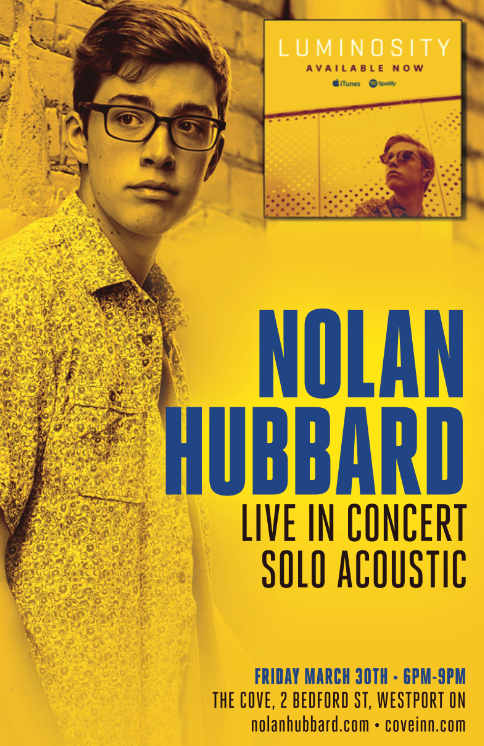 Fri.Mar.30 NOLAN HUBBARD (Young Solo Phenom, Acoustic Pop/Rock!, Gananoque) 6-9pm www.nolanhubbard.com