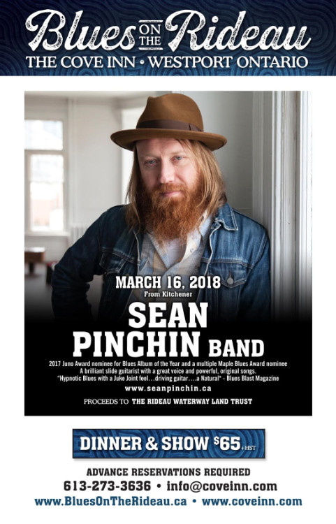 Fri.Mar.16 BLUES on the RIDEAU with SEAN PINCHIN BAND (Kitchener) 7-11pm Buffet + Show $65 + HST www.bluesontherideau.ca www.seanpinchin.ca