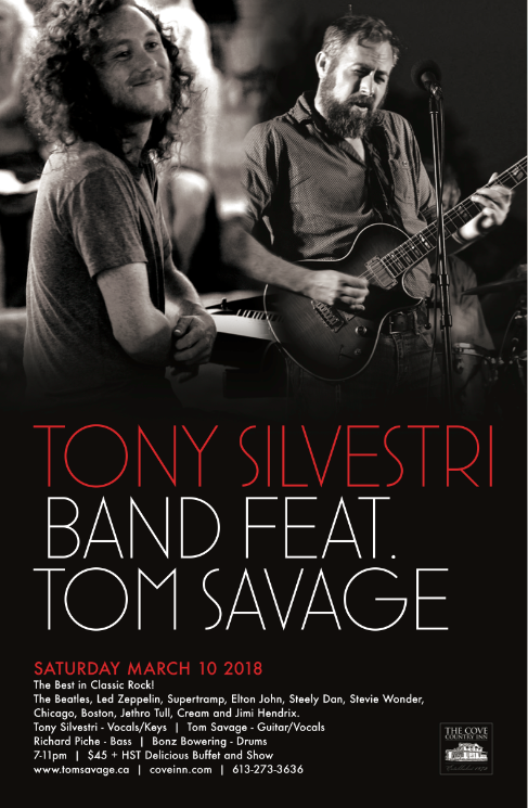 Sat.Mar.10 TONY SILVESTRI BAND feat. TOM SAVAGE (The Best in Classic Rock!, Kingston) 7-11pm $45 + HST Buffet & Show www.tomsavage.ca
